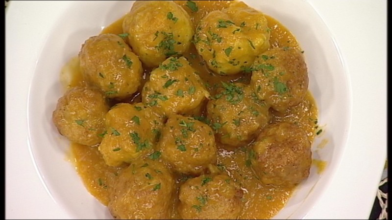 - Hacer bolitas con la masa reservada, pasarlas por harina y freírlas en aceite de oliva. Cuando estén doradas las incorporamos a la salsa y dejamos que se cocinen unos minutos.