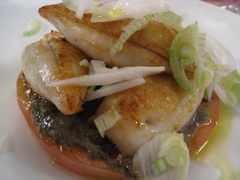 - Para la vinagreta de anchoas; disponer en una jarra las aceitunas negras, ½ diente de ajo, las anchoas, unas gotas de limón y pimienta. Triturar bien e ir añadiendo el aceite de oliva virgen extra hasta obtener la consistencia de vinagreta suave. Reservar al frío.