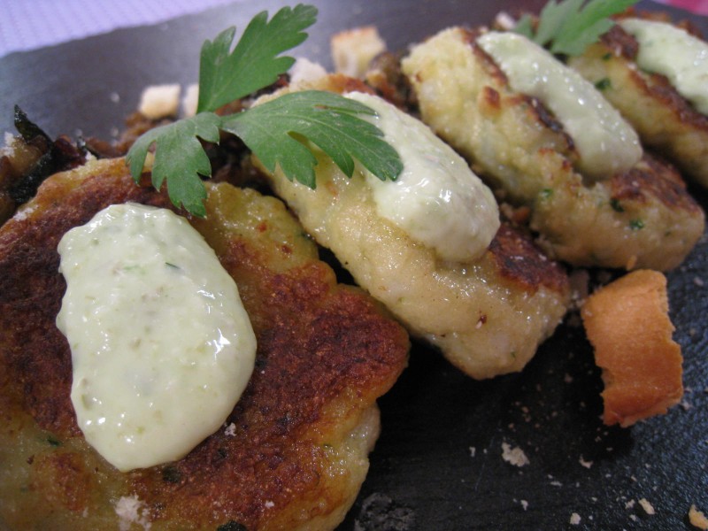 - Para la salsa tártara dispondremos medio dedo de leche en el fondo de una jarra. Comenzaremos a batir suavemente mientras vamos añadiendo, poco a poco, el aceite de girasol. Una vez que tenga textura de mayonesa, agregar los pepinillos, las alcaparras, la cebolleta y otro poco de perejil picado. Batir de nuevo y terminar la salsa tártara con un chorrito de aceite de oliva virgen extra y unas gotas de vinagre.