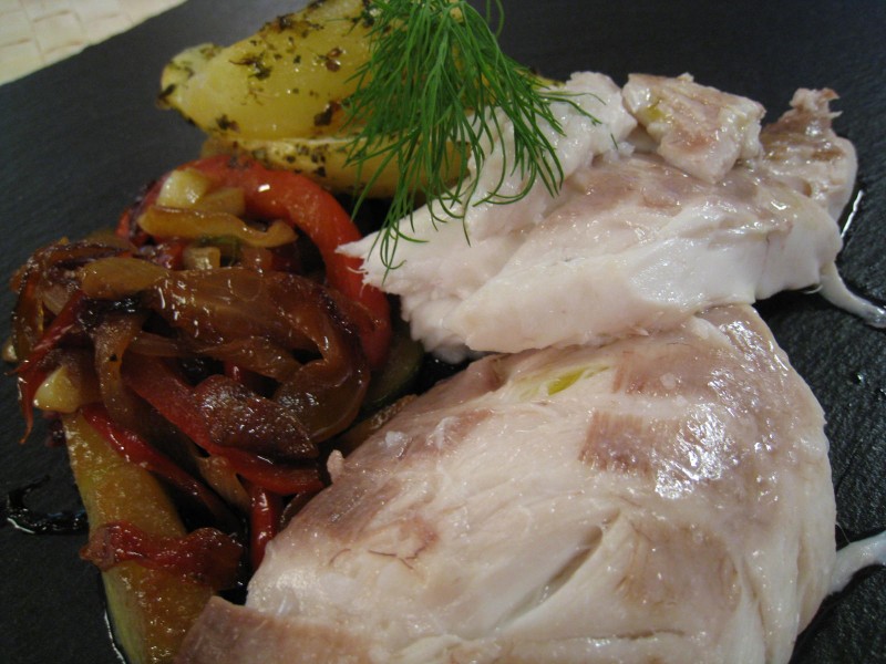 - – Disponer una dorada entera y sin limpiar sobre dicha sal y cubrirla con más sal. Humedecer con un poco de agua y hornear a 200º C. durante unos 30 minutos.