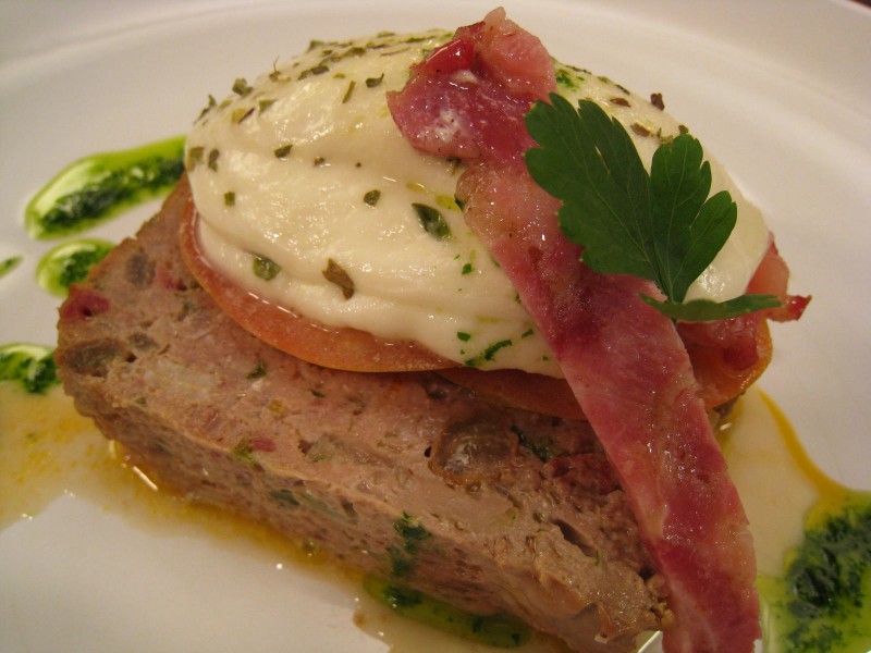 - – Cortar 4 rebanadas de pastel de carne, disponer en una fuente de horno. Colocar encima algunas rodajas de tomate, algunas rodajas de fiambre encima del tomate y unas pequeñas porciones de mozarella fresca encima. Justo antes de meterlo en el horno a 190º C., añadiremos un poco más de fiambre cortado en finas tiras por encima, un golpe de orégano y un chorrito de aceite de oliva. Hornear 4-5 minutos y buen apetito.