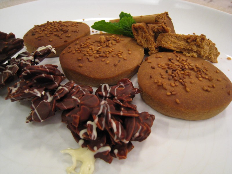 • Podemos hacer una rápidas rocas de chocolate derritiendo chocolate al baño María y añadiéndole almendras fileteadas tostadas y una pizca de curry. Mezclar bien y apartar en pequeñas porciones sobre un plato o fuente cubierto con papel vegetal.