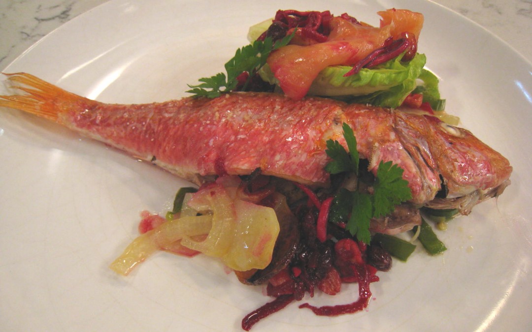 - Por último, sacar las patatas del horno y disponer encima los salmonetes previamente salpimentados. Regar con un pequeño chorreón de aceite de oliva virgen extra e introducir de nuevo en el horno durante 10 minutos, hasta que el pescado esté bien cocinado.