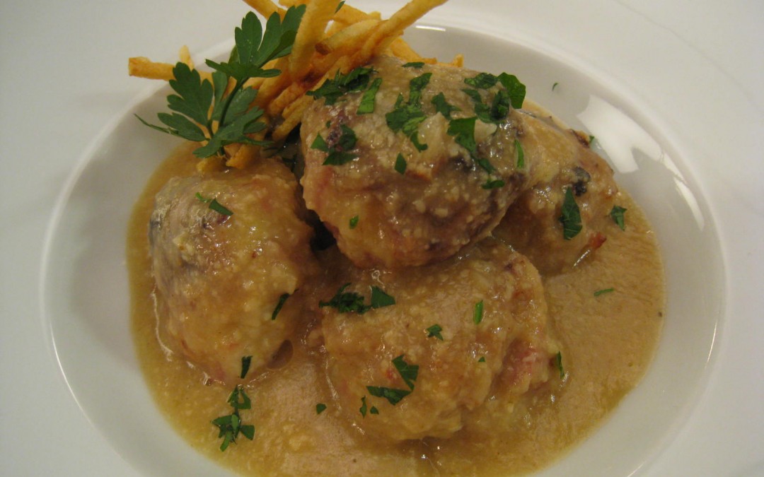 - Quitar la hoja de laurel, triturar la salsa e introducir las albóndigas en ella. Dejarlas cocinar 15 minutos a fuego medio.