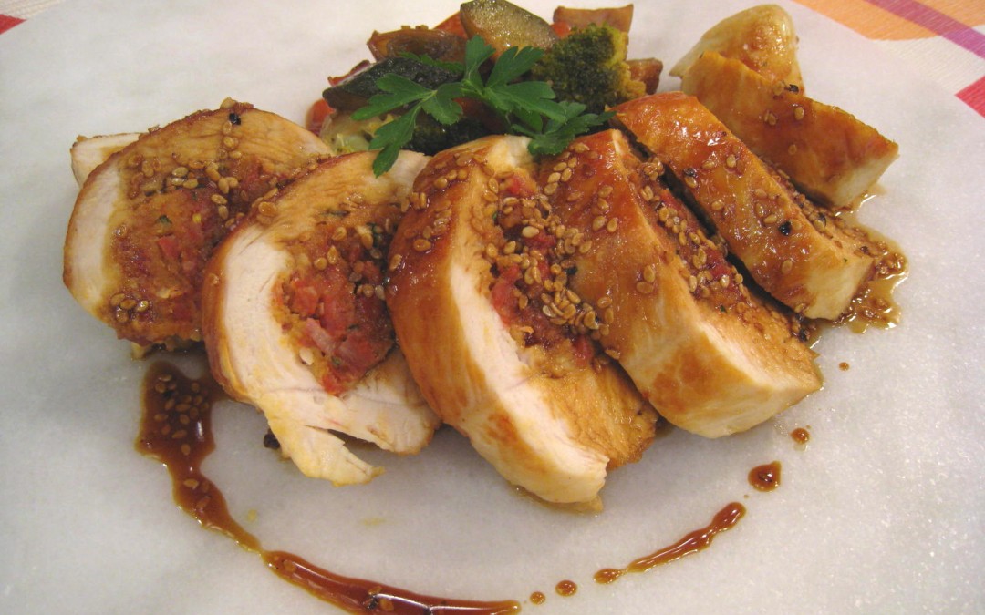 - Solo nos restará cocinar las pechugas de pollo rellenas en una sartén con un poco de virgen extra. Una vez que estén doradas, bajaremos el fuego para que se terminen de cocinar e iremos pintándolas con el adobo.