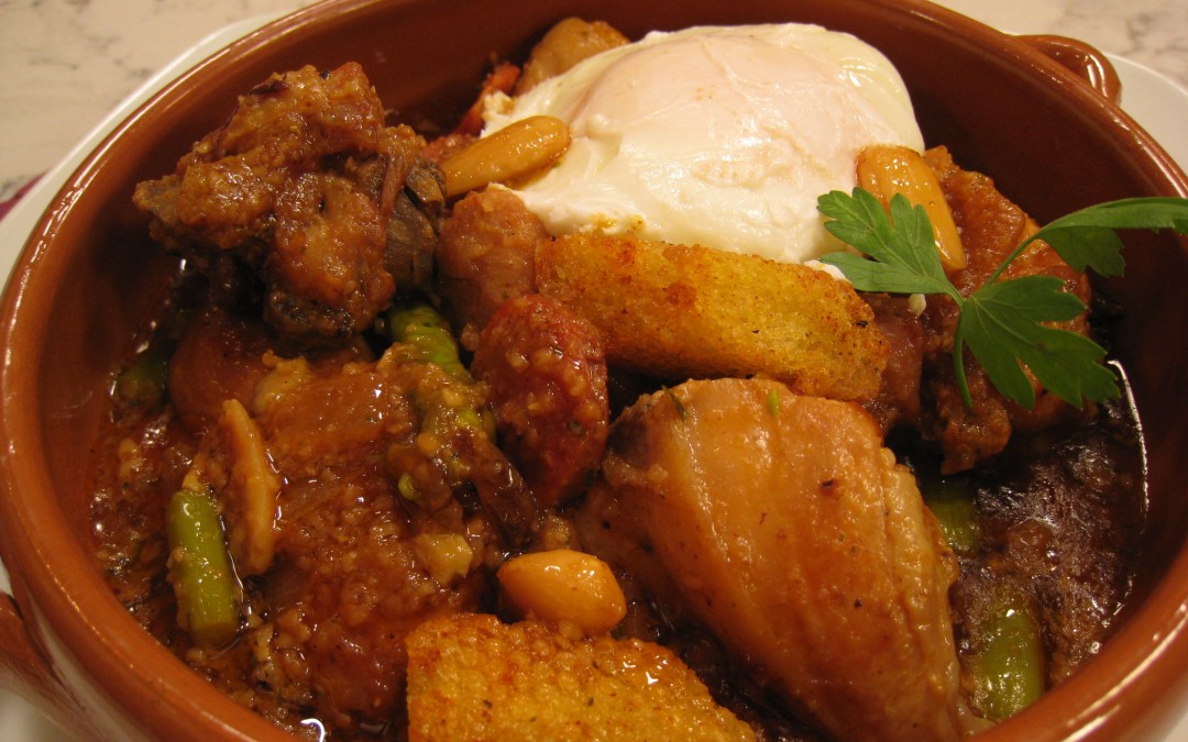 - Servir la carne con el huevo pelado (con mucho cuidado para evitar romperlo) encima y los picatostes alrededor.
