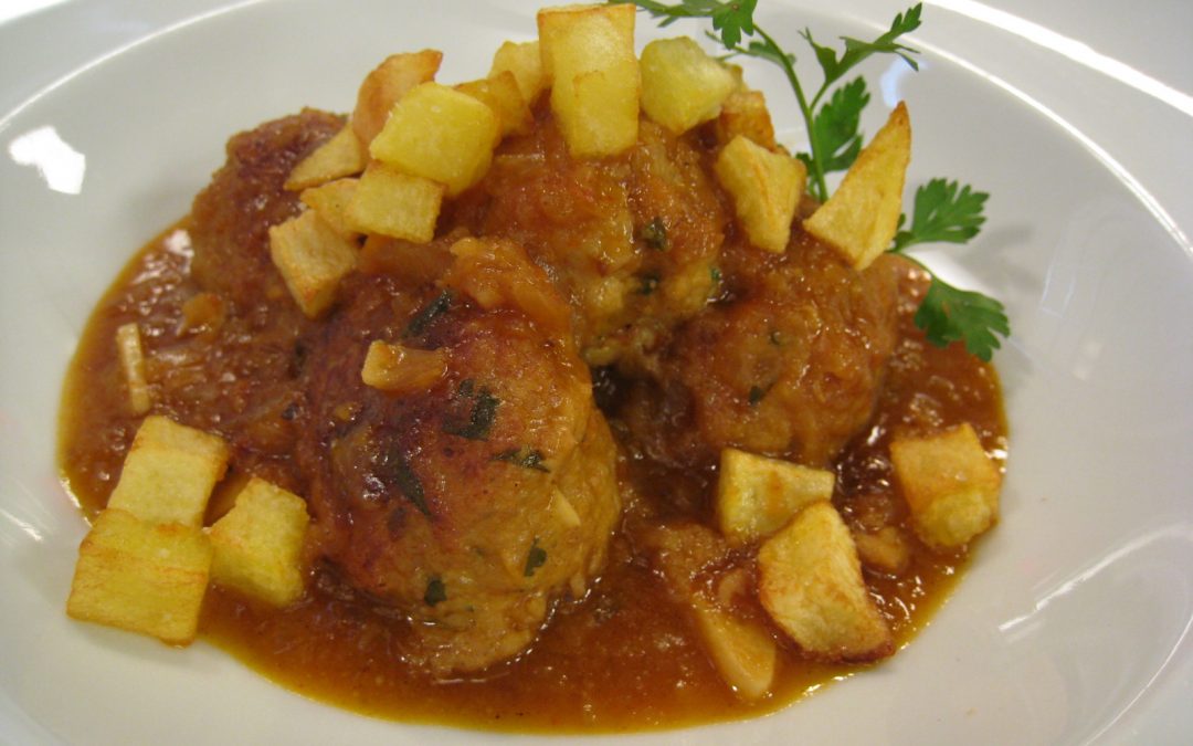 • Dar forma de bola a las albóndigas y comenzar a dorarlas en una cacerola con un poco de aceite de oliva virgen extra. Apartar sobre papel de cocina para que escurran.