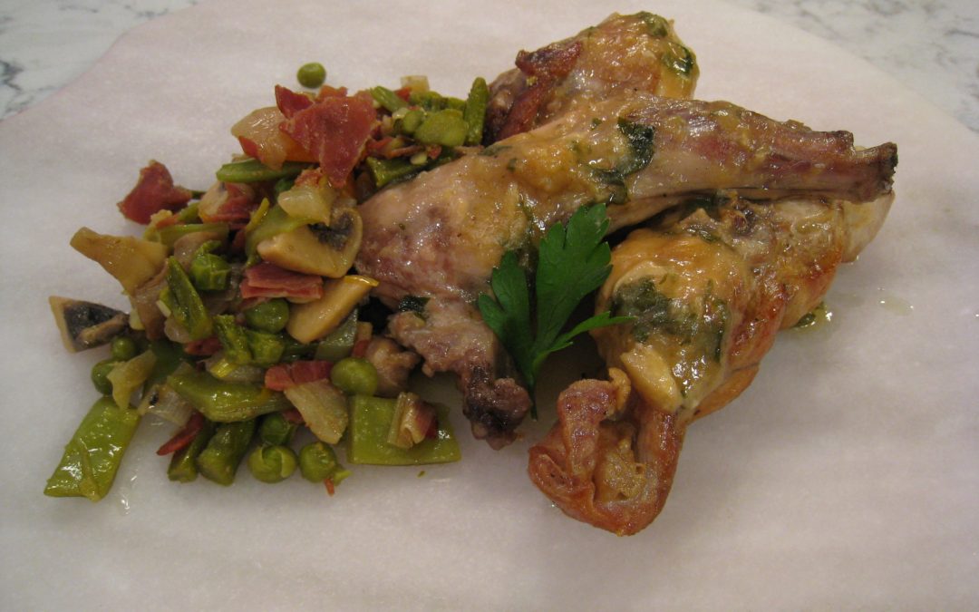 - Verter sobre el conejo bien dorado 1 vaso de vino blanco y dejar que también evapore el alcohol