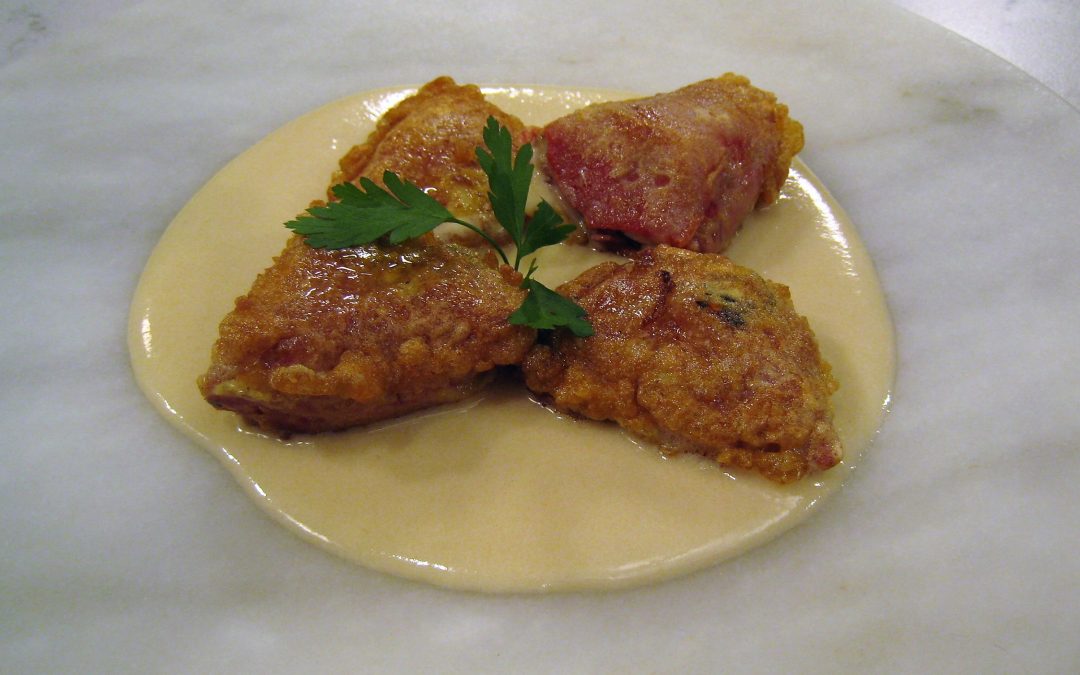 Finalmente, rellenar los pimientos con ayuda de una cucharilla, rebozarlos por harina, huevo batido y freírlos, en una sartén, con un poco de aceite de oliva virgen extra.