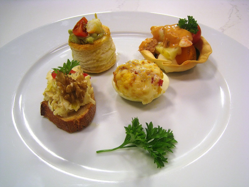 - Para el último aperitivo de hoy, partir 6 huevos cocidos a la mitad y vaciar las yemas en un recipiente. Incorporar 1 pechuga de pollo cocida y picada y mayonesa Ybarra al gusto del comensal. Mezclar y rellenar las medias claras, disponer encima de cada uno una tira de piquillo y un poco más de mayonesa Ybarra. Llevar al horno para que gratine, durante 10 minutos aprox., a 200ºC.