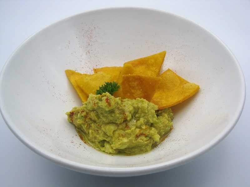Pelar entonces 3 aguacates y aplastarlos con un tenedor. Mezclar el puré de aguacate con el hummus, salpimentar bien, probar de especias y reservar al frío.