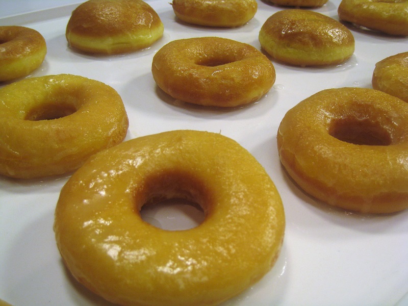Introducir los donuts fríos en el bol de glaseado y, con un pincel de cocina, retirar el exceso. Dejar sobre una rejilla hasta que se seque el glaseado.