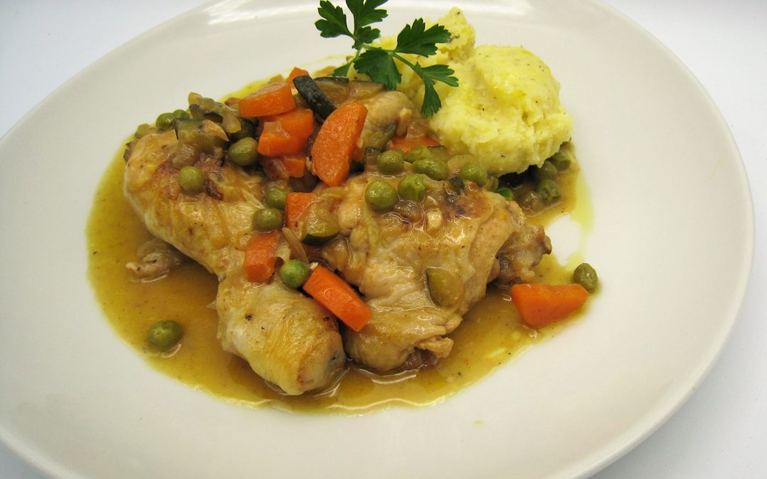 Por otro lado, comenzar a dorar el pollo troceado, en una cacerola, con un buen chorreón de aceite de oliva virgen extra.