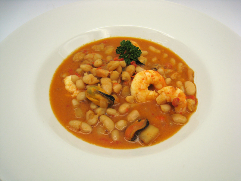 SUGERENCIA DE PRESENTACIÓN: Servir las alubias marineras bien calientes en una cazuela o plato sopero.