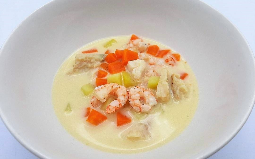 SUGERENCIA DE PRESENTACIÓN: Disponer la mayonesa en una sopera donde vayamos a servir, agregar un chorro pequeño de manzanilla y verter el caldo poco a poco. Una vez que hayamos mezclado bien podemos volcar los tropezones de pescado y verduras. Probar de sal y servir