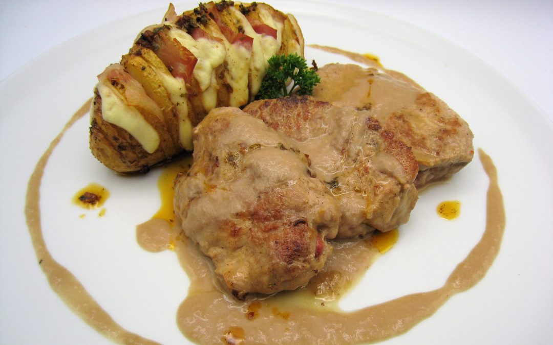 SUGERENCIA DE PRESENTACIÓN: Servir nuestros solomillos rellenos en salsa acompañados de las patatas Hasselback.