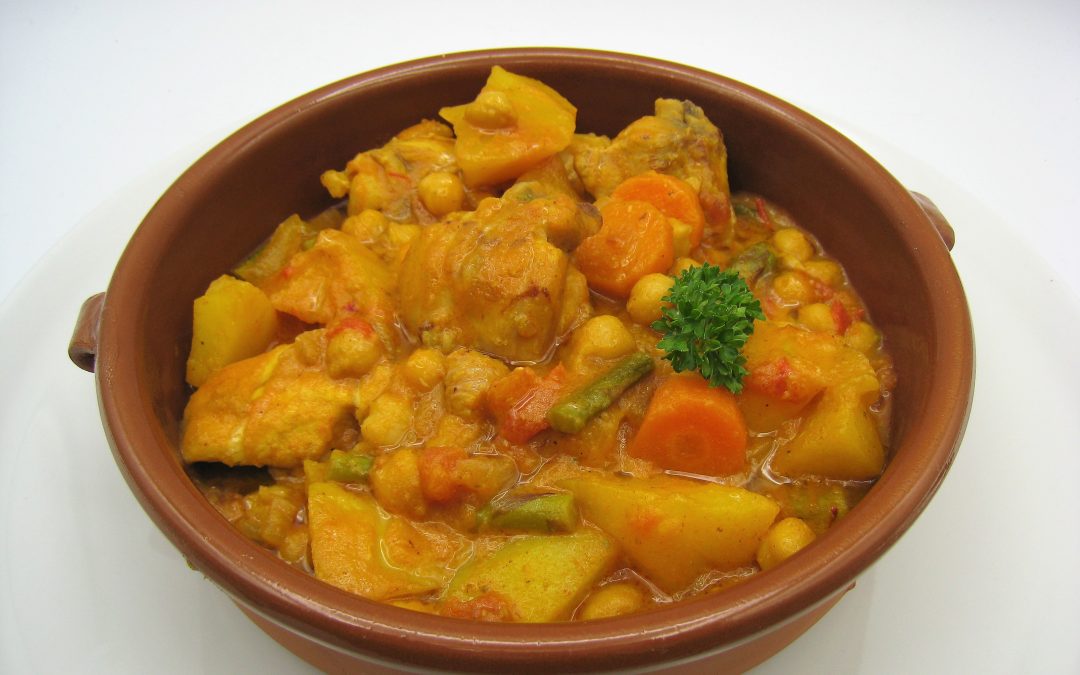 Incorporar los garbanzos cocidos, 1 clavo, un poco de comino molido y probar de sal. Dejar cocinar, a fuego medio, hasta que la carne y las patatas estén tiernas.