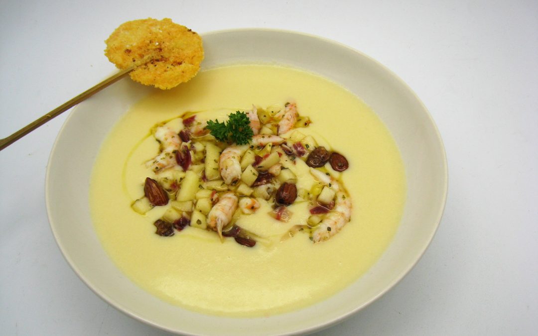 SUGERENCIA DE PRESENTACIÓN: Servir nuestra vichyssoise bien fría con un poco de guarnición por encima y acompañada de las piruletas de partisano presentadas en un vaso.
