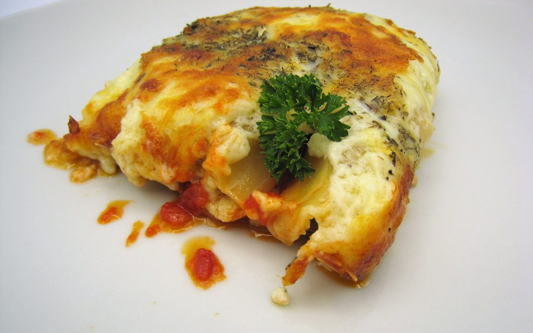 Extender la bechamel sobre los canelones, agregar abundante queso rallado por encima, espolvorear con tomillo seco y llevar al horno, precalentado a 210º C., hasta que el queso gratine.