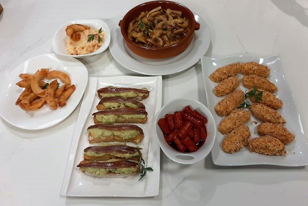 Para las tostadas de ensaladilla y anchoas, disponer en un cuenco la pulpa de un aguacate maduro, aplastar bien con las púas de un tenedor, mezclar con una porción generosa de ensaladilla y rallar un poco de limón por encima.