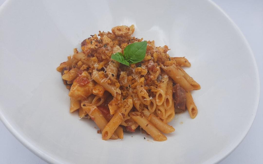 SUGERENCIA DE PRESENTACIÓN: Apartar un plato de macarrones y terminar espolvoreando migas crujientes y rallando lascas de queso por encima. Podemos decorar con unas aromáticas hojas de albahaca fresca.