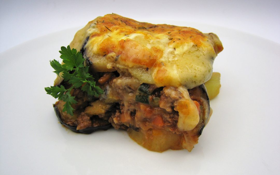 Verter sobre las musakas que tenemos ya montadas, espolvorear con queso rallado e incorporar un poco de tomillo seco. Cocinar entre 10 y 15 minutos en el horno precalentado a 180º.