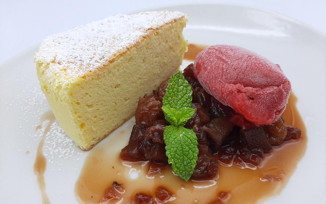 SUGERENCIA DE PRESENTACIÓN: Servir una cuña de tarta, espolvoreada con azúcar glasé y acompañada de un poco de chutney de uvas y, opcionalmente, una bola de helado de frutos rojos o el sabor que más nos guste.