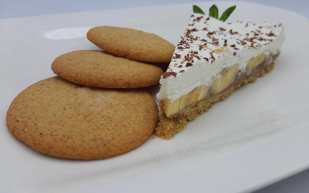 Extender la salsa sobre la base de galletas y repartir por encima rodajas de plátano.