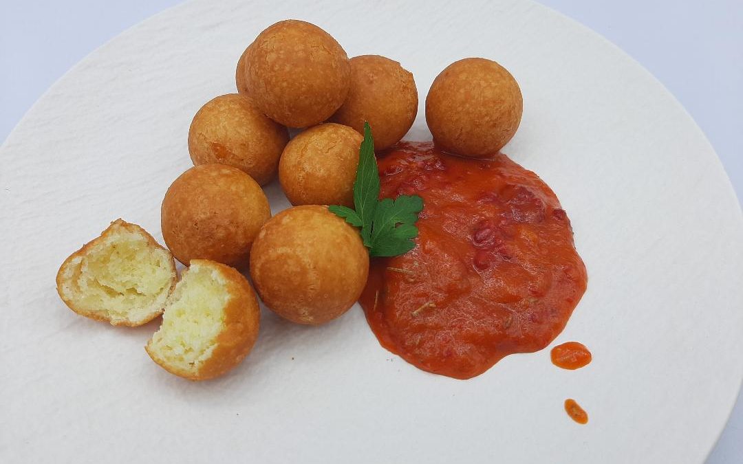 Por último, hacer pequeñas bolas con la masa y freír sumergiéndolas en virgen extra caliente. Cuando estén doradas, apartar sobre papel de cocina para que escurran.