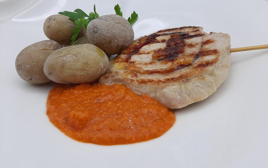 Añadir una rebanada gruesa de pan troceada, una cucharadita de pimentón dulce, el tomate picado, un chorrito de limón y media cucharadita de comino. Dejar cocinar unos minutos y batir añadiendo una pizca de sal y pimienta. Apartar y verter un chorreón generoso de virgen extra. Mezclar y reservar.