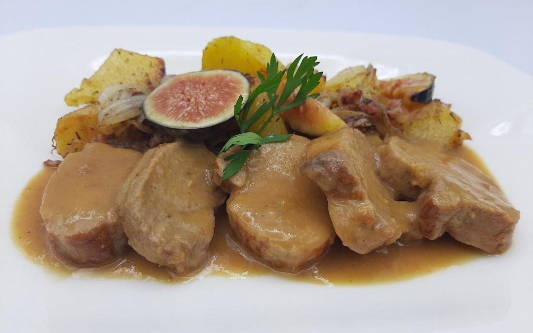 Retirar los solomillos de la cacerola y triturar bien la salsa. Volver a poner al fuego y agregar el resto de los higos cortados en cuñas. Dejar hervir suavemente.