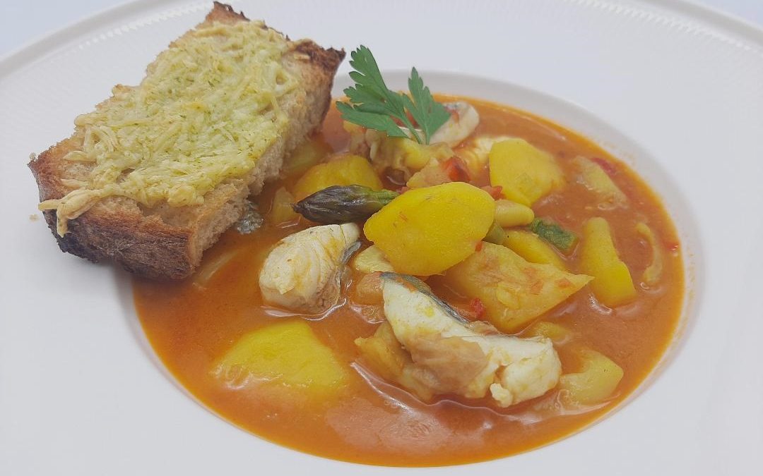 -Cuando el caldero marinero esté terminado, incorporar el pescado troceado, remover unos instantes, apagar y dejar reposar entre 3 y 4 minutos.
