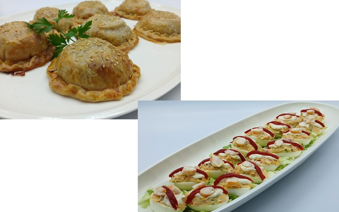 -Para terminar los huevos rellenos, disponer sobre cada uno un poco de mayonesa, una tira de pimiento del piquillo y algunas porciones de langostino cocido, picado y engrasado con un poco de aceite. Llevar a la mesa sobre un poco de lechuga picada.