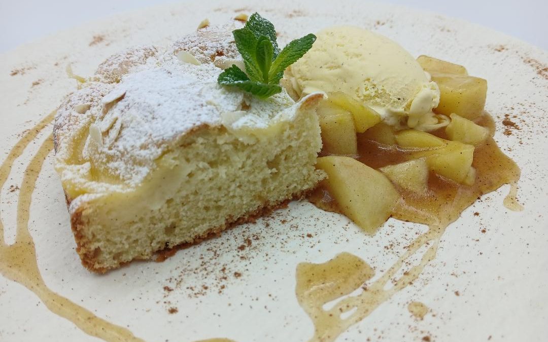 -Disponer una sartén al fuego con 2 cucharadas de aceite y cocinar los dados de manzana hasta que empiecen a estar tiernos.