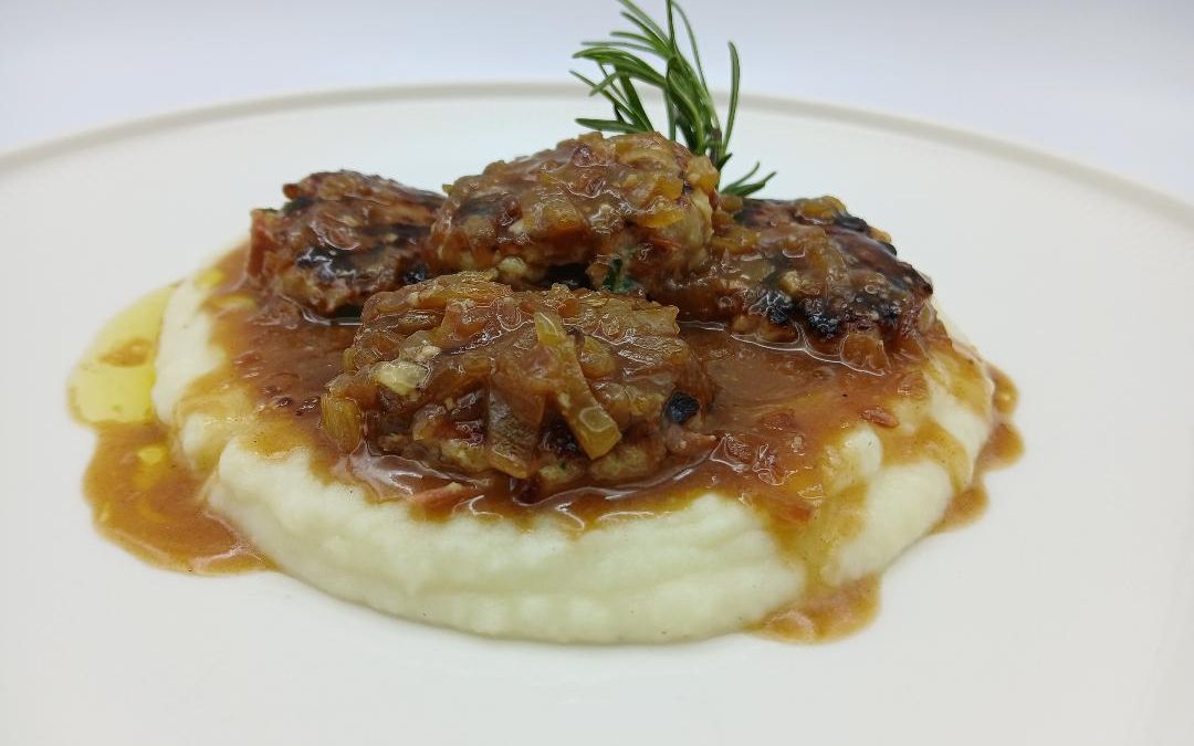 -Dar forma de pequeñas hamburguesas y sellar en una cacerola o sartén grande con unas cucharadas de aceite. Apartar y reservar.