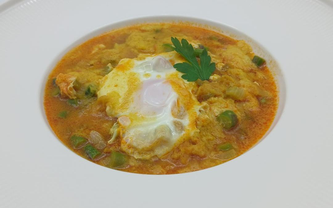 -Una vez tenemos la sopa de gato en su punto, cascar 4 huevos sobre esta y dejar cocinar para que la clara vaya cuajando.
